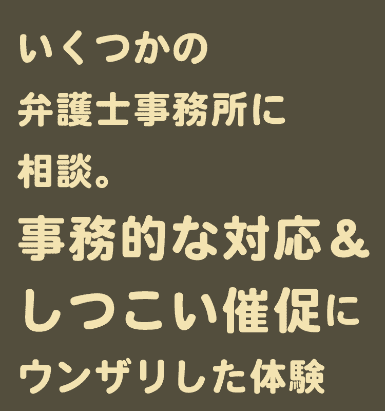 複数の弁護士先生に相談。事務的な対応&しつこい催促にウンザリ