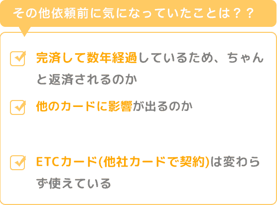 私は、申し込んだカードの借金を完済して数年経過しているため、ちゃんと返済されるのか、他のカードに影響が出るのかが気になっていました。