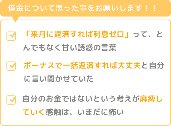 来月返せば大丈夫だから、もうちょっとだけ、もうちょっとだけ、という気持ちで、徐々に徐々にローン残高が増えていきました。
