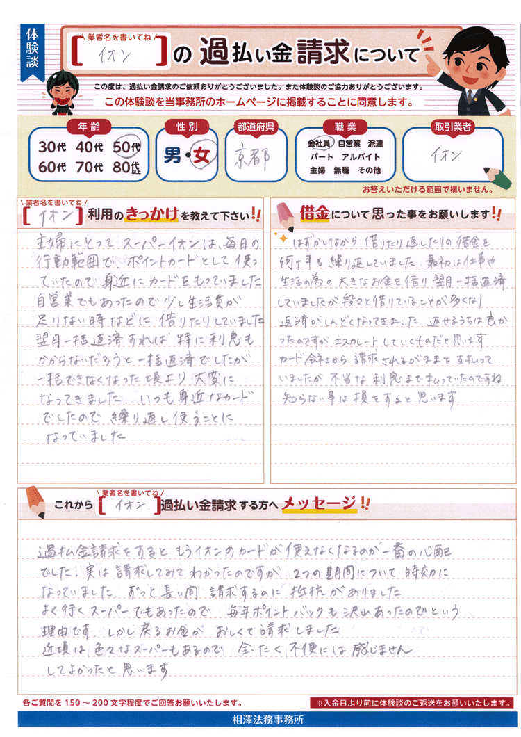 過払金請求をするともうイオンのカードが使えなくなるのが一番の心配でした。