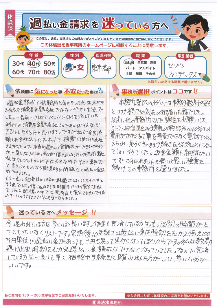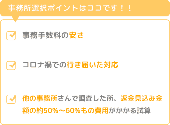 返金金額に納得がいかずこれはあまりにも無いと思い検索を続けこの事務所を選びました。