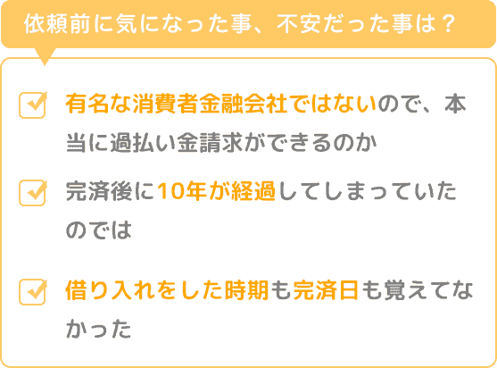 過払金請求で依頼前に気になった点は名だたる有名な消費者金融会社ではないのではと言う点でした。