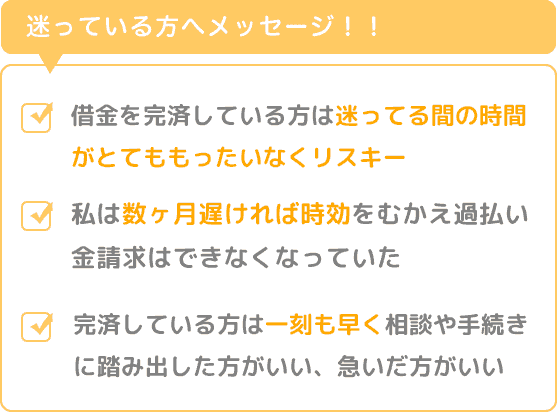なので完済している方は一刻も早く相談や手続きに踏み出した方がいい、急いだ方がいいです。