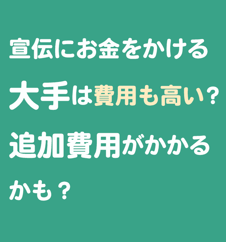 大手事務所などもCM、ラジオ、チラシなどをよく目にしますがその宣伝費などで小額でも追加費用がかかるかも?