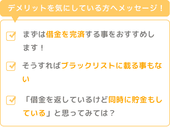 リストに載る事でこの先自動車など金額の大きな買い物をしようと思った時に借り入れ不可となり取引会社は勿論の事、家族にも迷惑をかける事になるのがとても嫌な事と思います。