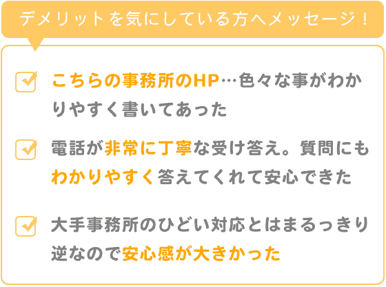 ※特に大手事務所のひどい対応とはまるっきり逆なので安心感が大きかったです。