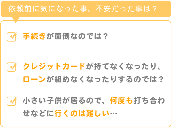 などの不安があり、なかなか依頼する勇気が出ませんでした。