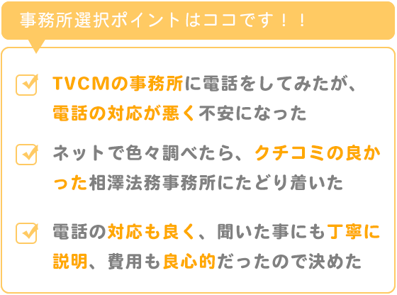 そこで、クチコミの良かった相澤法務事務所にたどり着きました。
