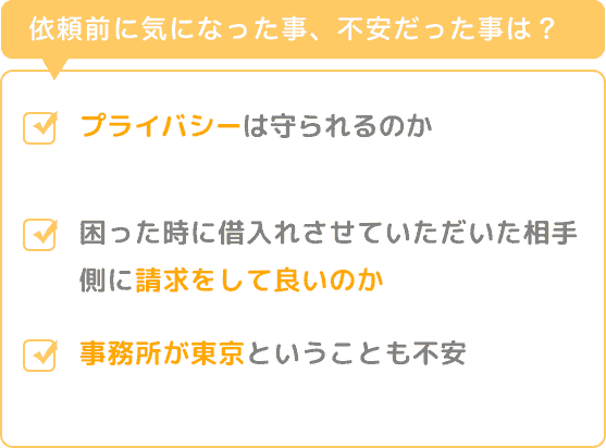 事務所が東京ということも不安でした。近くの事務所の方が良いのか迷いました。