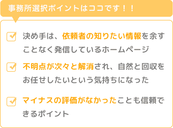 こちらを閲覧することで過払い金請求に対する不明点が次々と解消され、自然と回収をお任せしたいという気持ちになっていきました。