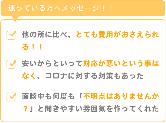 できれば費用を安く収めたいと思い、Webで探していたところ、こちらの事務所にたどり着きました。