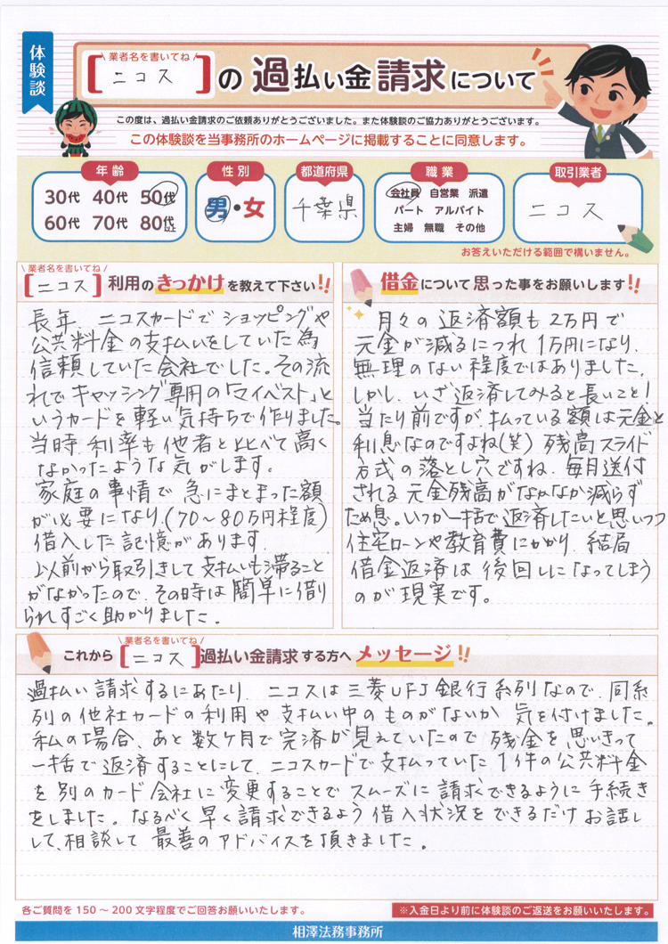 長年、ニコスカードでショッピングや公共料金の支払いをしていた為信頼していた会社でした。