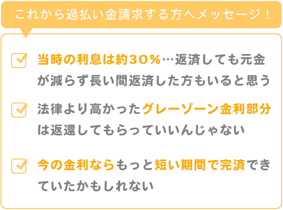 当時の利息は29%?27%?で約30%の利息が付いていて返済しても元金が減らず長い間返済を続けていた方いらっしゃると思います。借金は返すのが当たり前です。