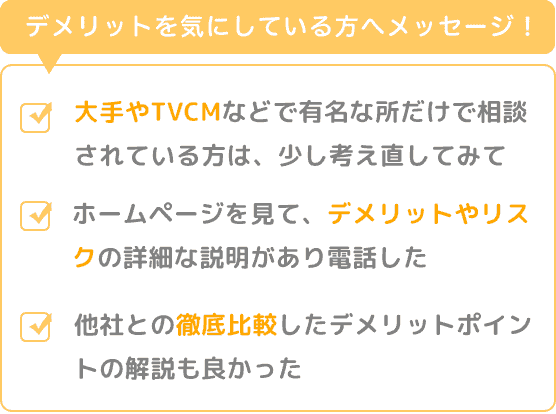 大手やTVCMなどで有名なところだけで相談されている方は、少し考え直してみて下さい。