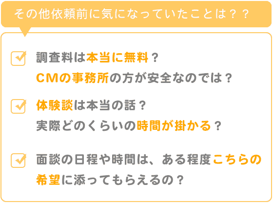 またどこの事務所に頼むのが本当に良いのか?頼む事務所撰びもとても不安に思いました。