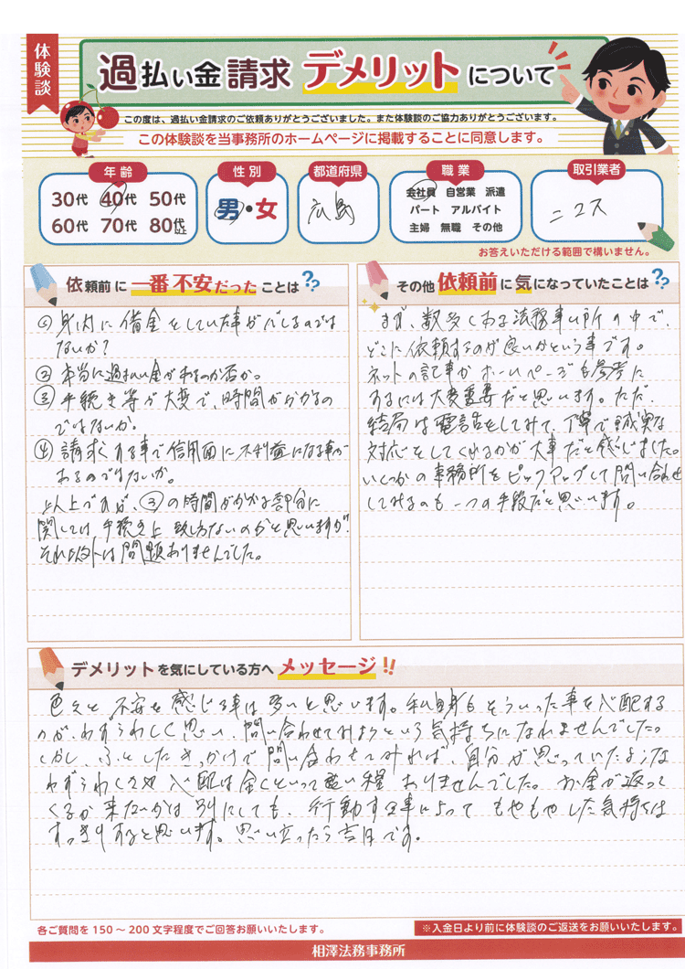私自身もそういった事を心配するのが、わずらわしく思い、問い合わせてみようという気持ちになれませんでした。