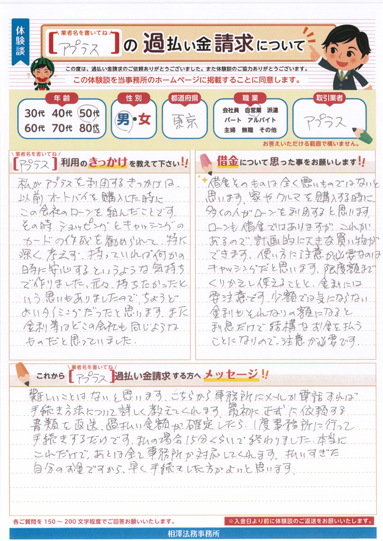 高い返還率を重視して事務所選び。行き着いたのは相澤法務さん