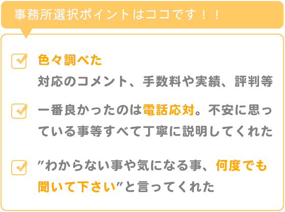 私が気になっている事や不安に思っている事、すべて丁寧に説明していただきました。