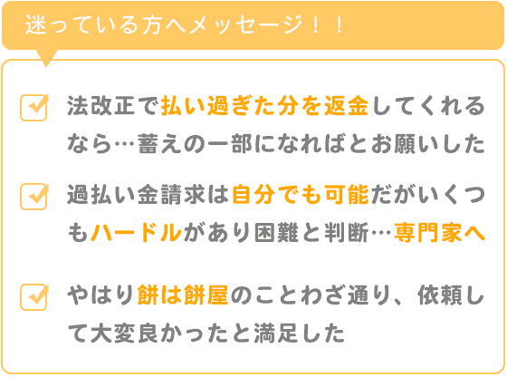 ③過払い金回収までの解りやすい説明が得られることだと思います。