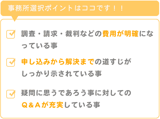 調査・請求・裁判などの費用が明確になっている事。