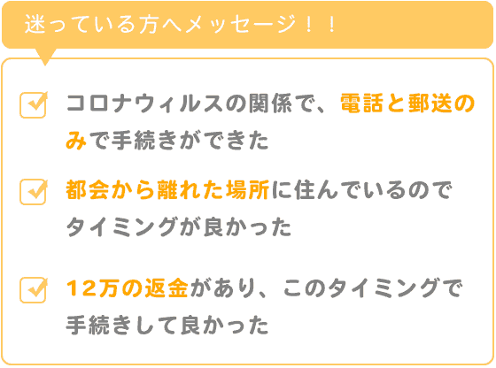 現在コロナウィルスの関係でソーシャルディスタンスを守るため電話と郵送のみで手続きができました。