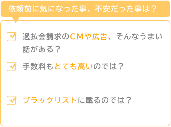 CMや広告等で過払金請求についてよくやっていて、逆にそんなうまい話があるのかと不安でした。