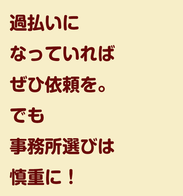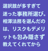 毎日流れるCMや大手の事務所に目が行きがちですが、自分に合った依頼者ファーストの事務所を見つけて欲しいと思います。