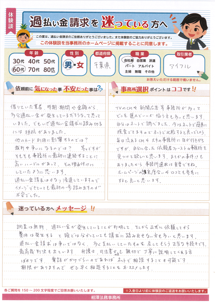 過払い金請求はかなり浸透していますのでイメージできていても最初の一歩踏み出すのが不安でした。