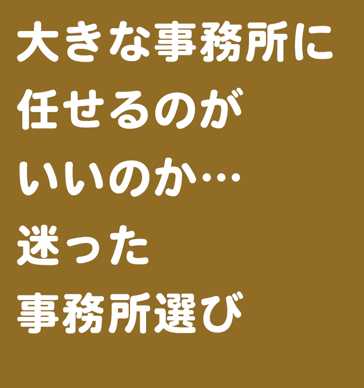 テレビに出てくる有名な所が良いのか、大きすぎない事務所が良いのか決めるまでに何年もかかってしまった。