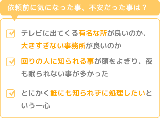 頼んだらブラックリストにのって沢山の人に知られてしまうのではないかと心配もありました。