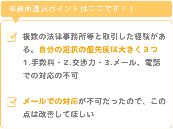 最終的には相澤法務事務所に依頼して、良かったと感じております。