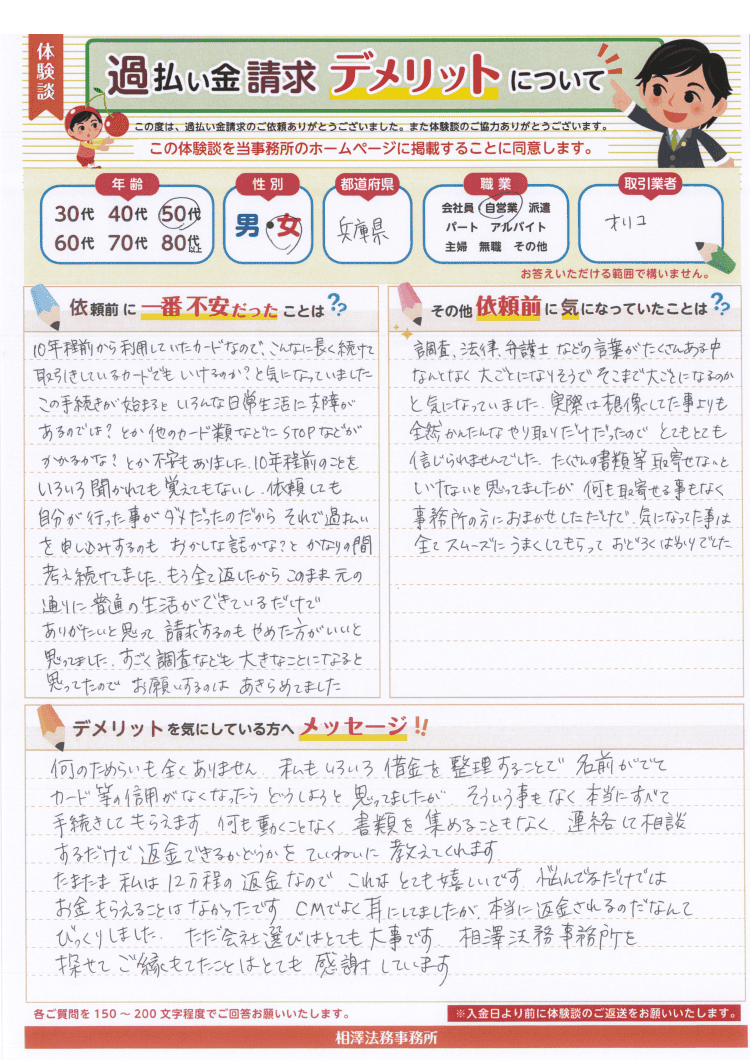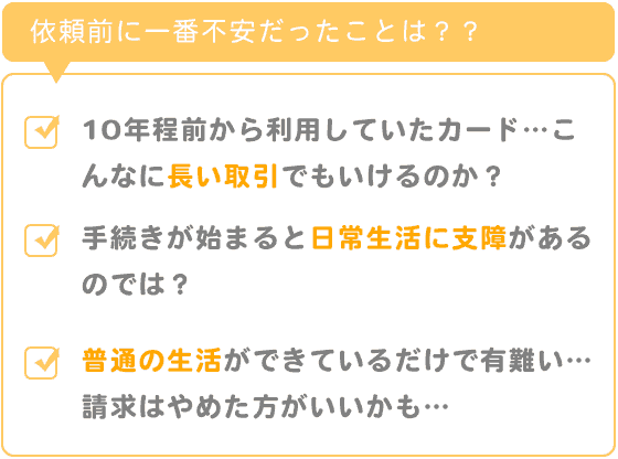 10年程前のことをいろいろ聞かれても覚えてもないし、依頼しても自分が行った事がダメだったのだからそれで過払いを申し込みするのもおかしな話かな?とかなりの間考え続けてました。