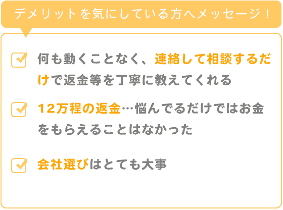 何も動くことなく、書類を集めることもなく、連絡して相談するだけで返金できるかどうかをていねいに教えてくれます。