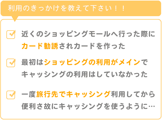 最初はショッピングの利用がメインでキャッシングの利用はしていませんでした。