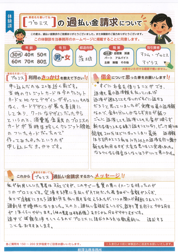 途中で減額交渉もしてくるのでプロミスに請求される方は徹底的に請求することをおすすめします。