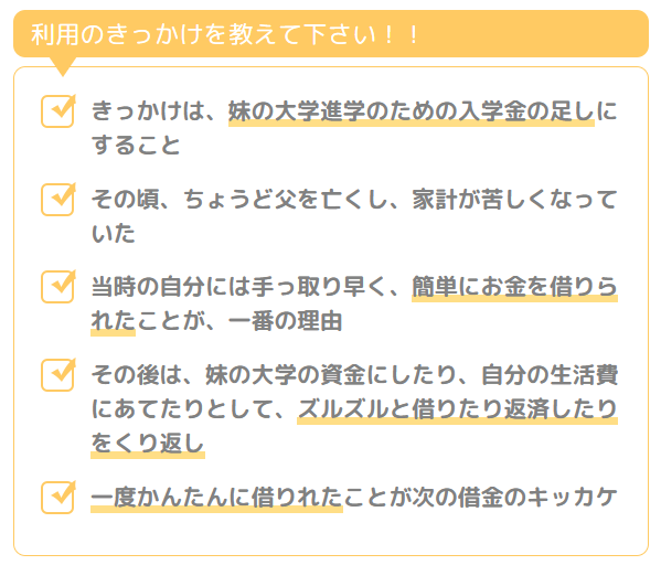 今思えば、もっと他の方法もあったと思うが、当時の自分には手っ取り早く、簡単にお金を借りられたことが、一番の理由です。