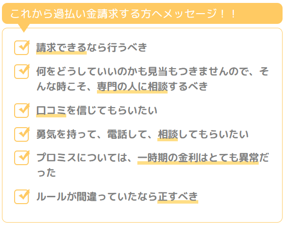 自分が借りたものなので、後ろめたい気持ちもあるとは思いますが、返済することも大変だと思いますし、それが法律の範囲であれば、当然過払いなど存在するはずがないので、ぜひ、請求できるなら行うべきだと思います。