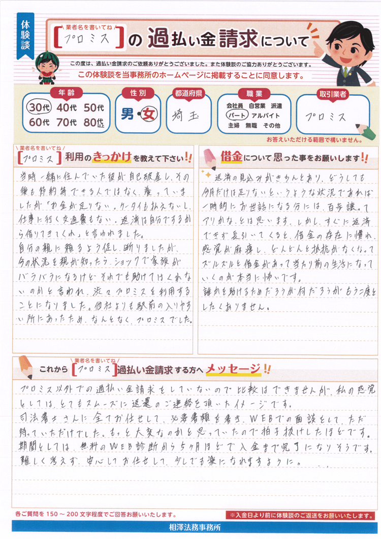 プロミス以外での過払い金請求をしていないので比較はできませんが、私の感覚としては、とてもスムーズに返還のご連絡を頂いたイメージです。