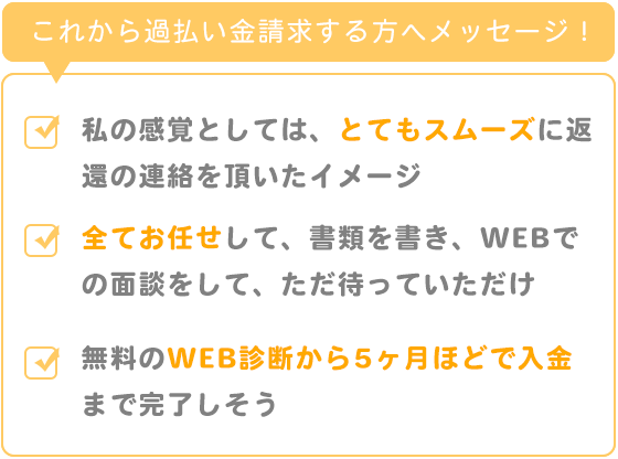 期間としては、無料のWEB診断から5ヶ月ほどで入金まで完了になりそうです。