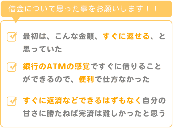 最初は、こんな金額、すぐに返せる、と思っていました。