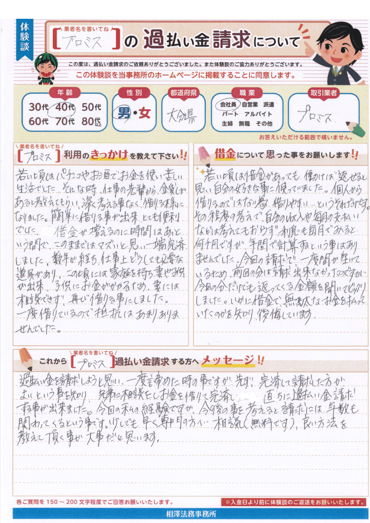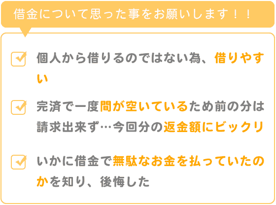 いかに借金で、無駄なお金を払っていたのかを知り、後悔しています。