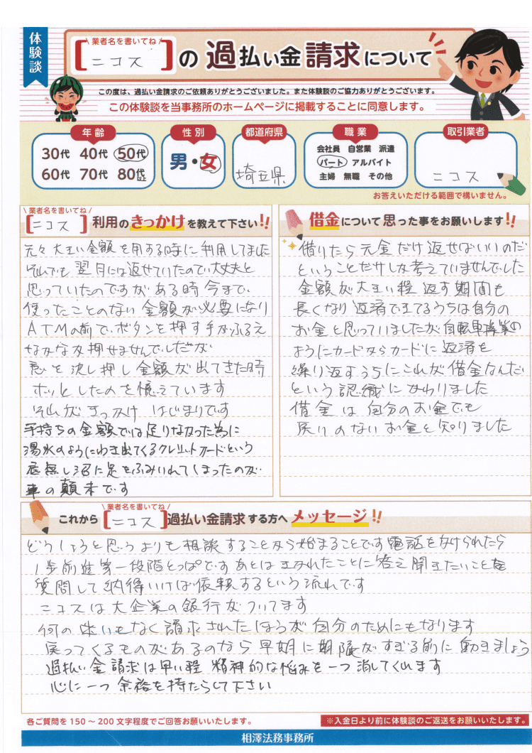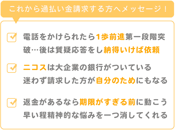 ニコスは大企業の銀行がついてます。何の迷いもなく請求されたほうが自分のためにもなります。
