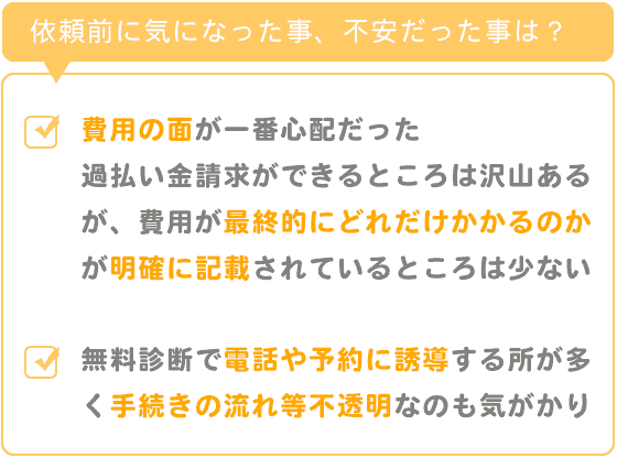 依頼前は最終的にかかる費用の面が一番心配でした。