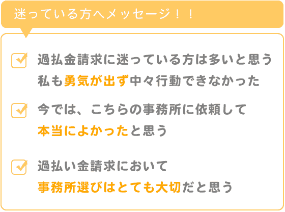 過払い金請求において事務所選びはとても大切だと思います。