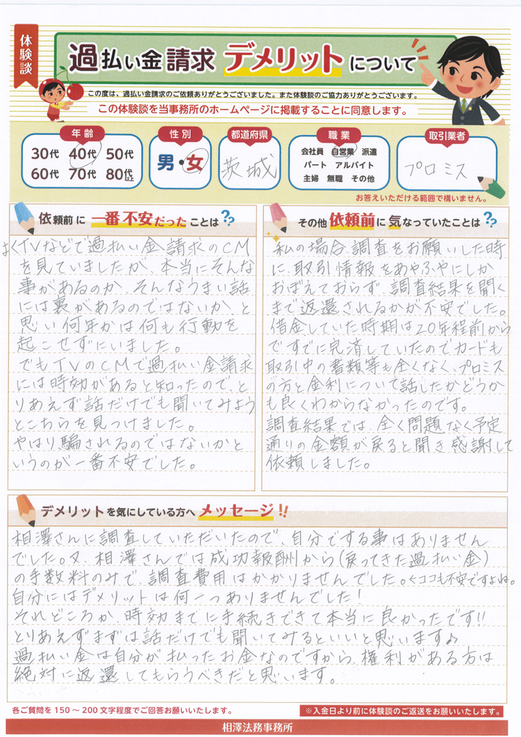 依頼前はあれほど不安だったのに、過払い調査でスッキリしました