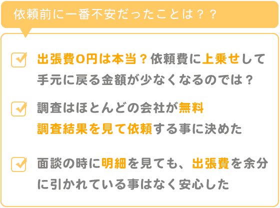 明細を見ても、出張費の分を余分に引かれている事はなく、安心して依頼できました。