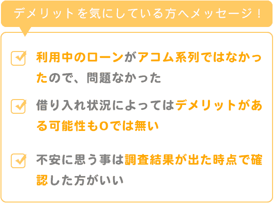 皆様の借り入れの状況によってはデメリットがある可能性も0では無いので、不安に思う事は調査結果が出た時点で確認してみた方がいいと思います。