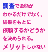 調査の結果で戻る金額が低い場合は依頼を受けれないとの説明も事前にありました。