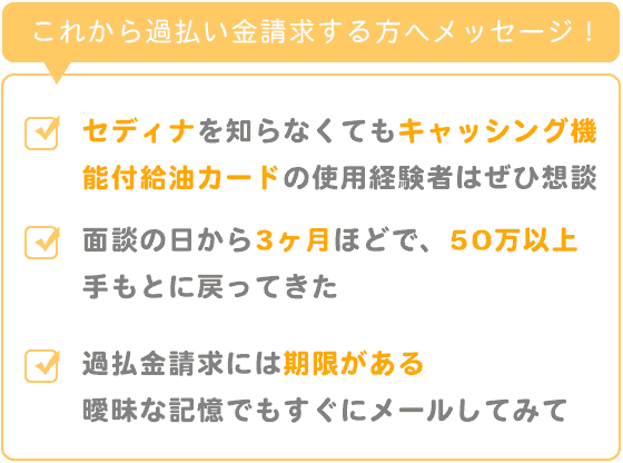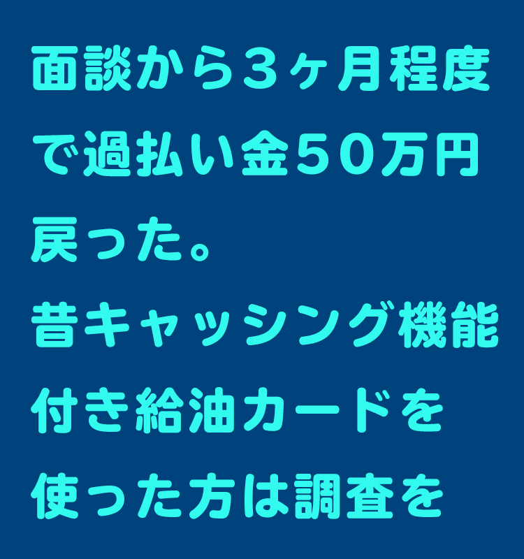 戻った過払い金は50万円。その昔給油カードで借りた方は調査を