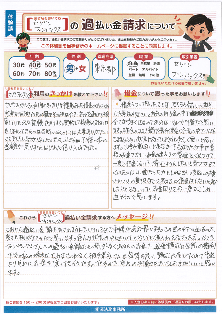 これから過払い金請求をされる方にもいろいろなご事情があると思います。